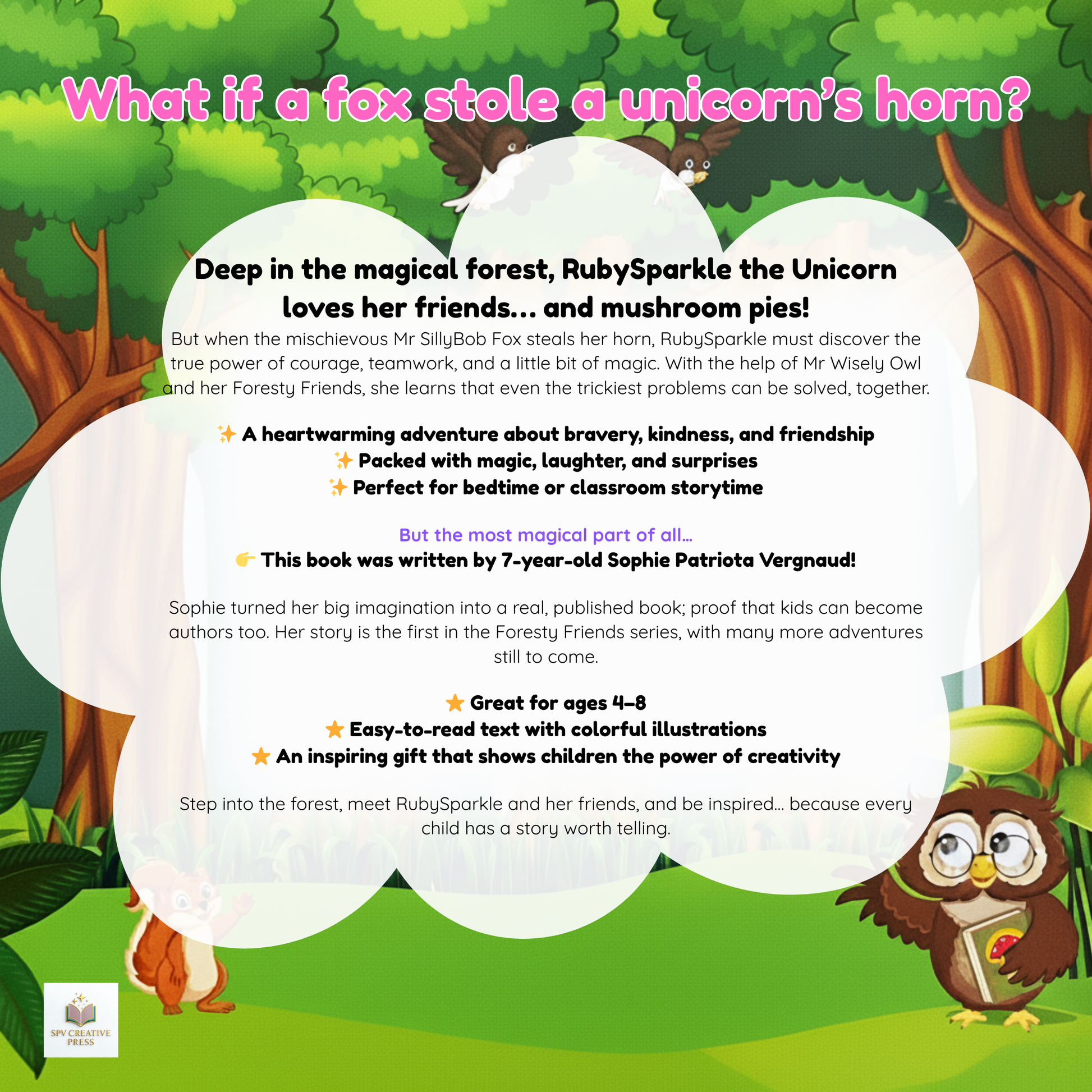 Step into the magical world of Foresty Friends™ with the inspiring story of RubySparkle, the unicorn who discovers that true magic comes from courage, kindness, and friendship.